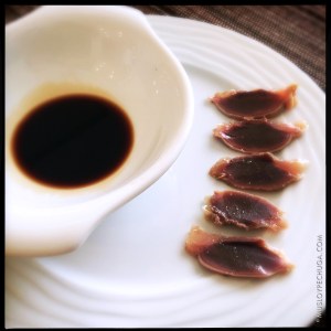 Vamos a comenzar la receta por las partes que se conservan naturalmente durante más tiempo y que, por lo tanto, podemos ir preparando con antelación; el bonito en escabeche y las yemas de huevo curadas.
