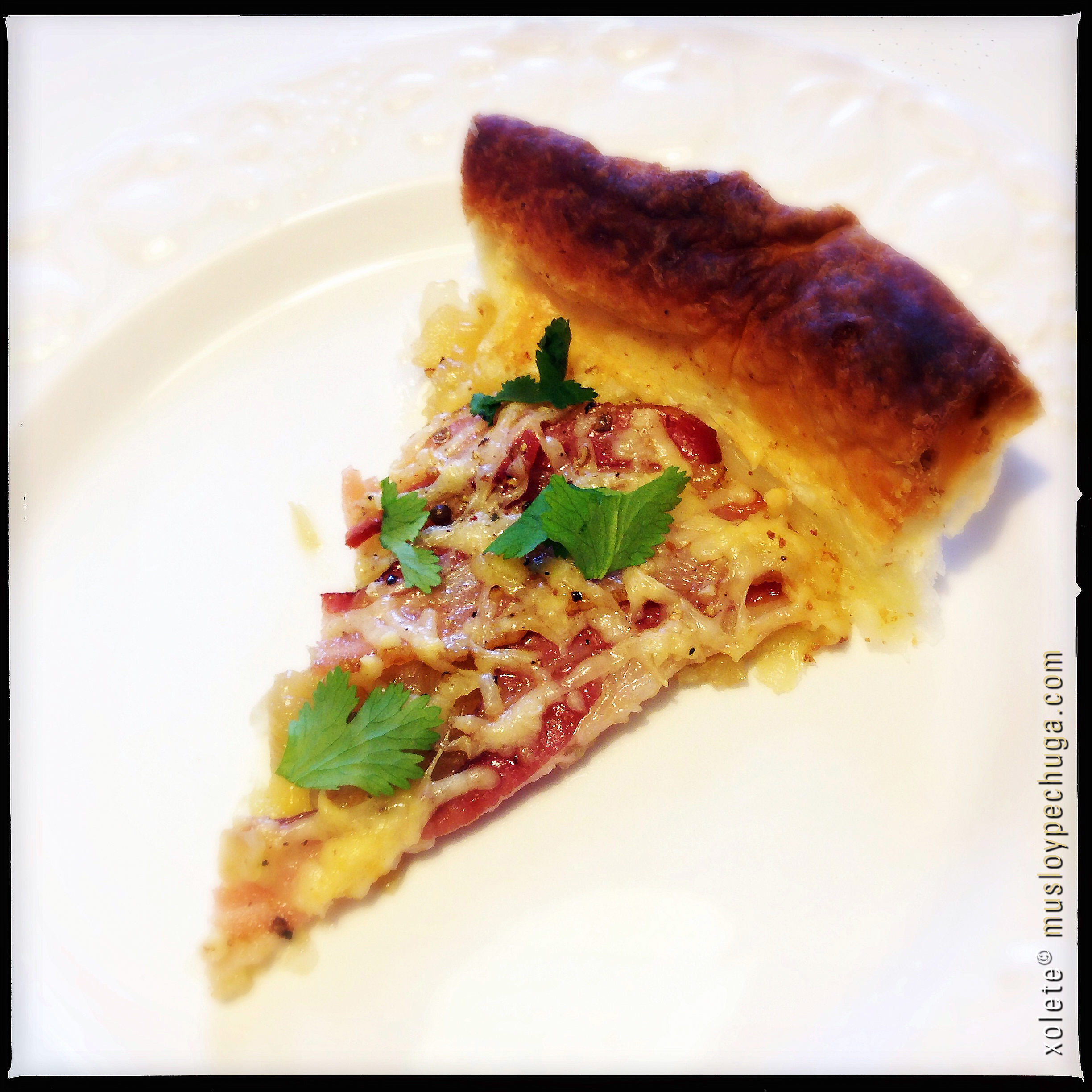La tartaleta ya está lista. Solo queda hornearla durante unos 15 minutos a 210ºC , añadir unas hojitas de cilantro frescas y disfrutarla acompañada por una buena ensalada verde -canónigos y rúcula, por ejemplo– y de un buen vino joven con carácter como, por ejemplo un Dehesa de Gago 2011, un vino de Toro musculoso, jugoso, fresco y tremendamente frutal. Y como siempre, bon appétit!