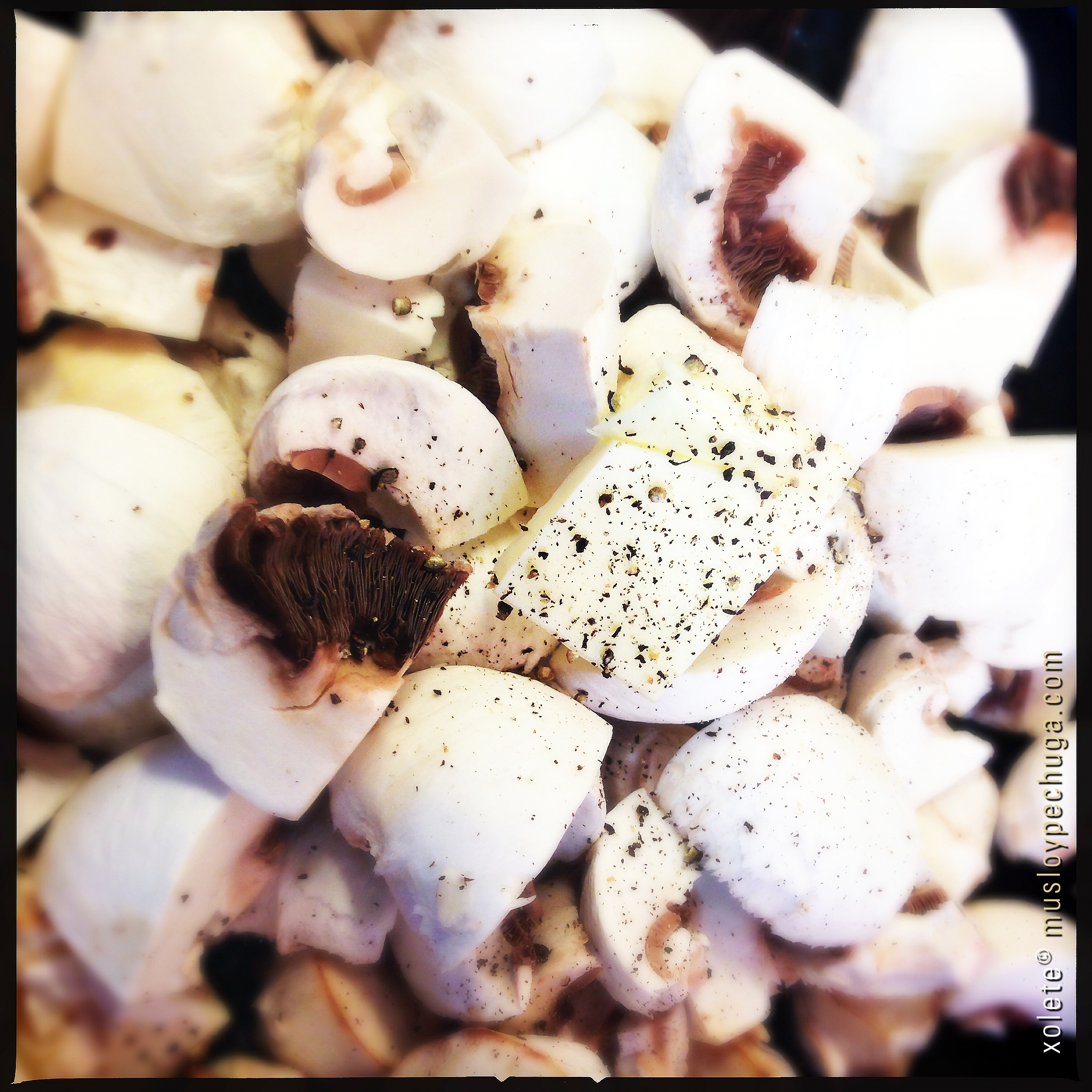 Mientras el guiso se va haciendo, limpiamos, troceamos y salteamos los champiñones con un poco de mantequilla –una nuez– hasta que hayan evaporado su líquido –unos 10 minutos-. Reservamos. Aparte, mezclamos en un bol pequeño la nata junto con unos 100 gramos de Roquefort –esta cantidad depende de vuestro gusto y aprecio por su sabor, personalmente opto por unos 150 ó 175 g.– con la ayuda de un tenedor hasta obtener una mezcla uniforme –no es necesario batir ya que el calor deshará los posibles «grumos» del queso-. Reservamos también.