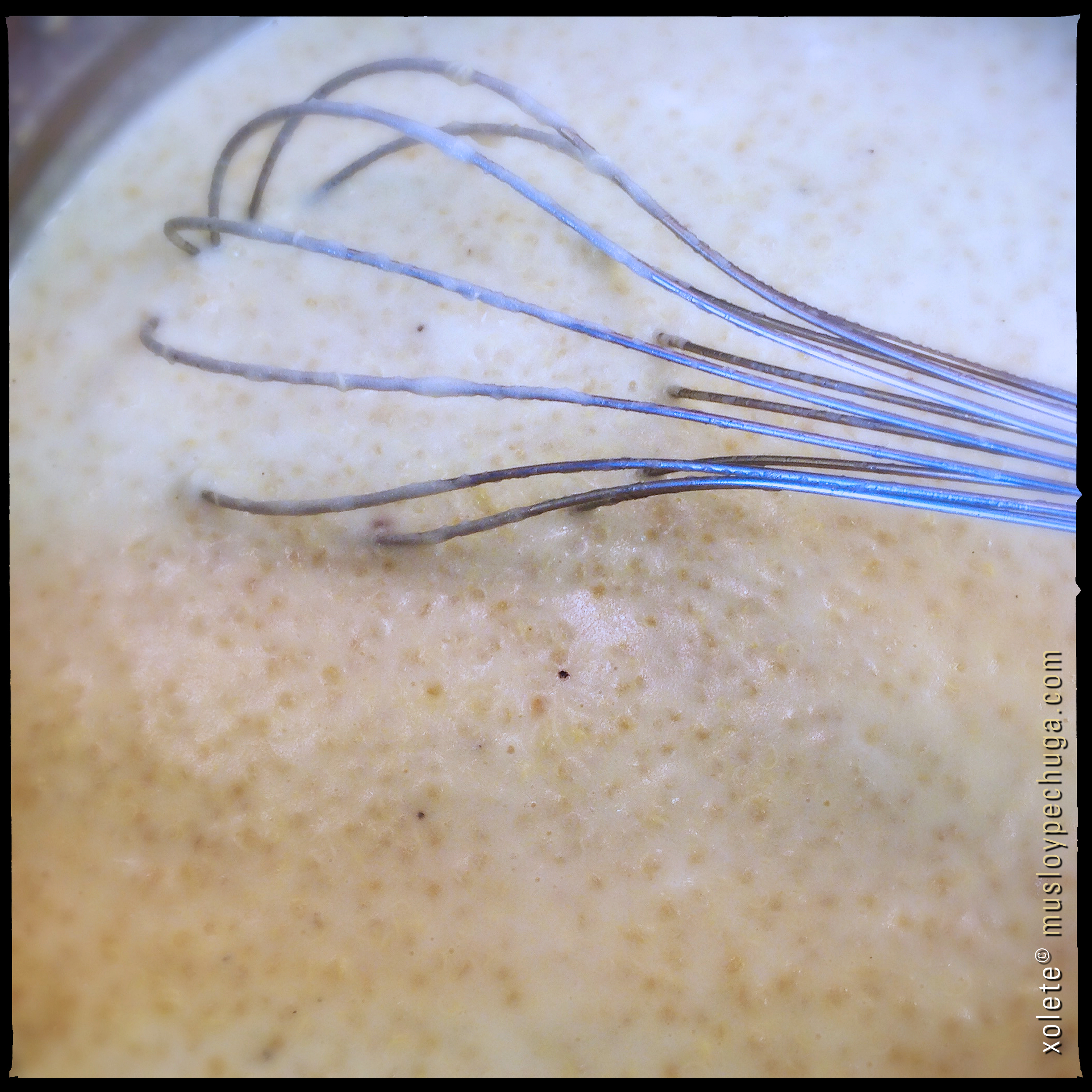 En esta receta nace, por una parte, de la curiosidad por probar una presentación de quinua –o quinoa– que desconocía y me resultaba tan sugerente como intrigante; su mezcla con puré de patatas –completando, así, un círculo andino de ida y vuelta-. Y, por otra parte, las ganas de equipararlo –siempre desde el más profundo respeto– al tradicional pulpo «á feira» esta vez ligeramente tostado, aliñado y acompañado por la crema.