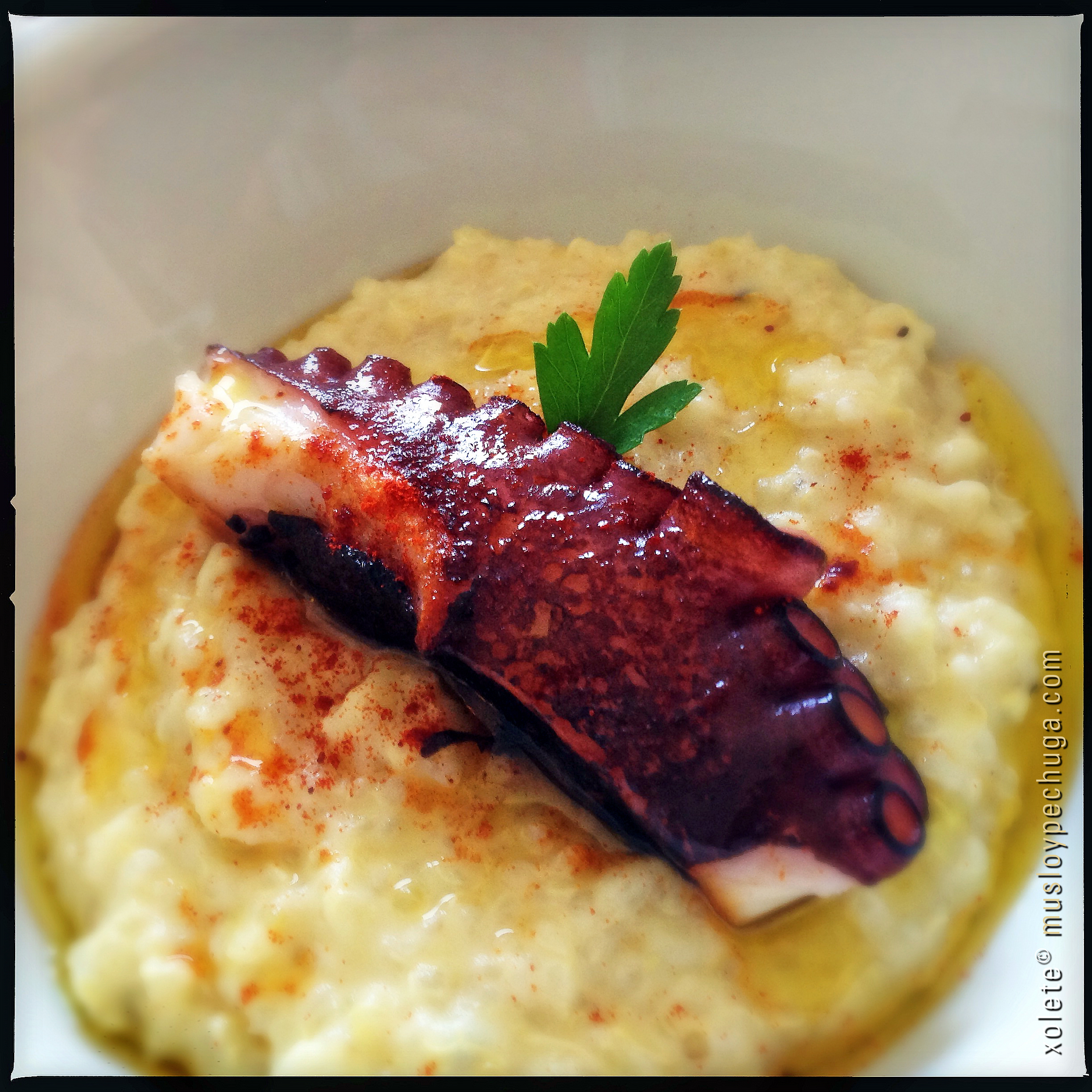 Estas son las premisas y, puedo garantizar –obviamente no hay ningún misterio-, que el resultado es tan agradable de degustar como de presentar. Las texturas granulada, cremosa y crujiente al mismo tiempo del puré aporta un interesante contrapunto a la elasticidad de la carne de pulpo. Así que sin más preámbulos vamos con los ingrediente necesarios para su elaboración y a ver qué les parece;