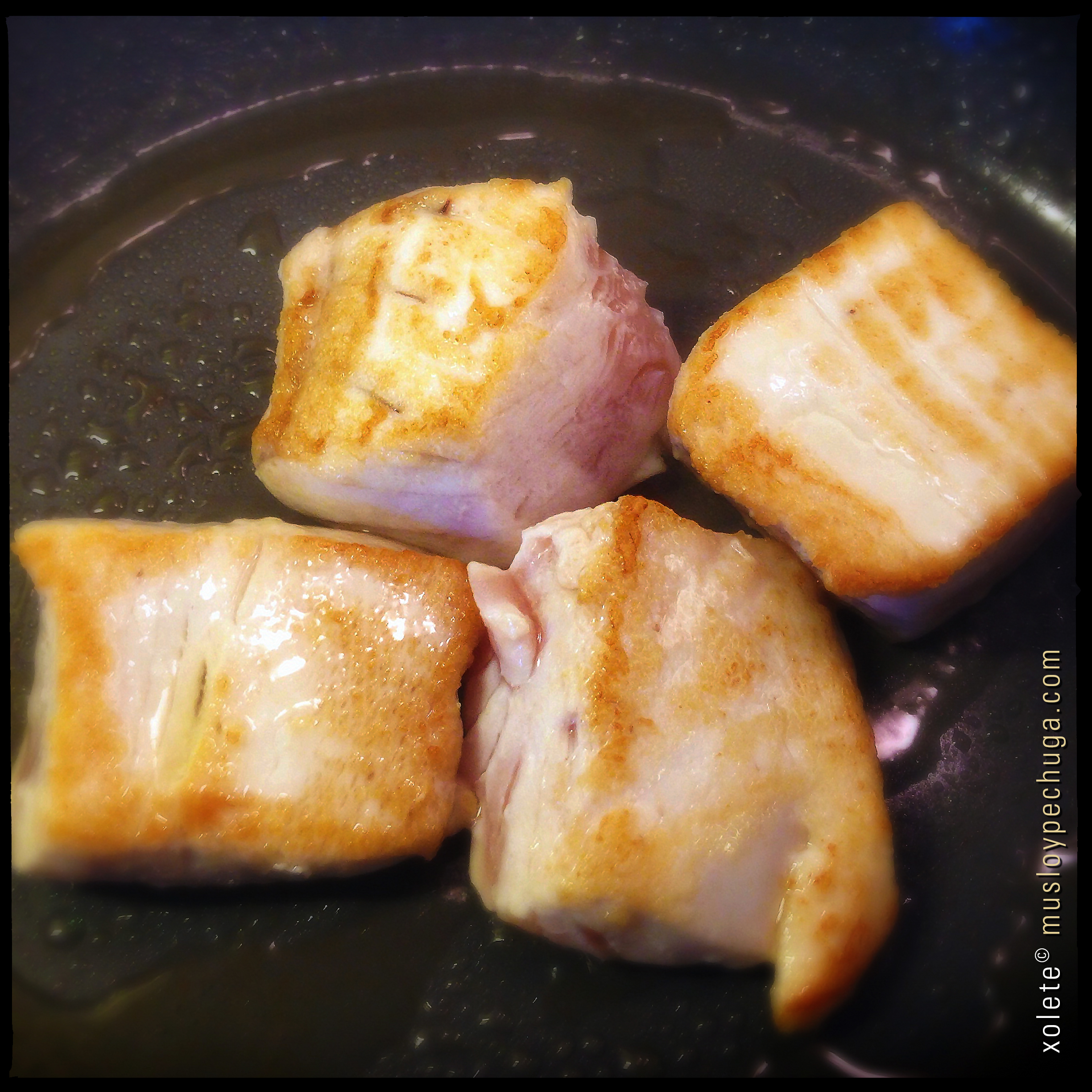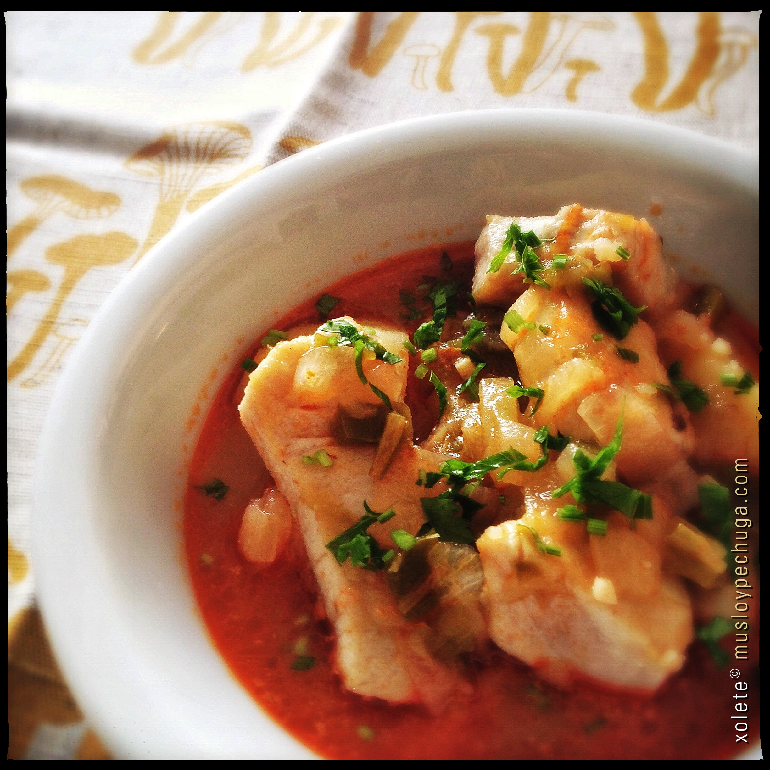 - Unos 750 gramos de Bonito del Norte fresco –ahora estamos en plena temporada y hay que aprovecharla-. Si queréis preparar el caldo base, pedid al pescadero que os guarde las espinas, pieles y recortes –y algún trocito de más-.