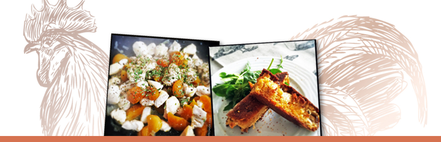Una rápida y sencilla receta para preparar lo que bien puede ser bien una excelente merienda-cena, bien parte de una divertida entrada para ir abriendo el apetito antes de la comida. La particularidad de esta receta radica en su –digamos– perfecta combinación de sabores y texturas. De una parte unos daditos de pollo magníficamente aromatizados con estragón –todo un clásico– y, en esta ocasión, complementado con la suave, refrescante y aromática dulzura de los albaricoques secos. Además, el contraste entre la textura abizcochada del cake y la melosa y jugosa suavidad de los albaricoques y la carnosidad del pollo salteado completan el universo sensorial de esta deliciosa simpleza.
