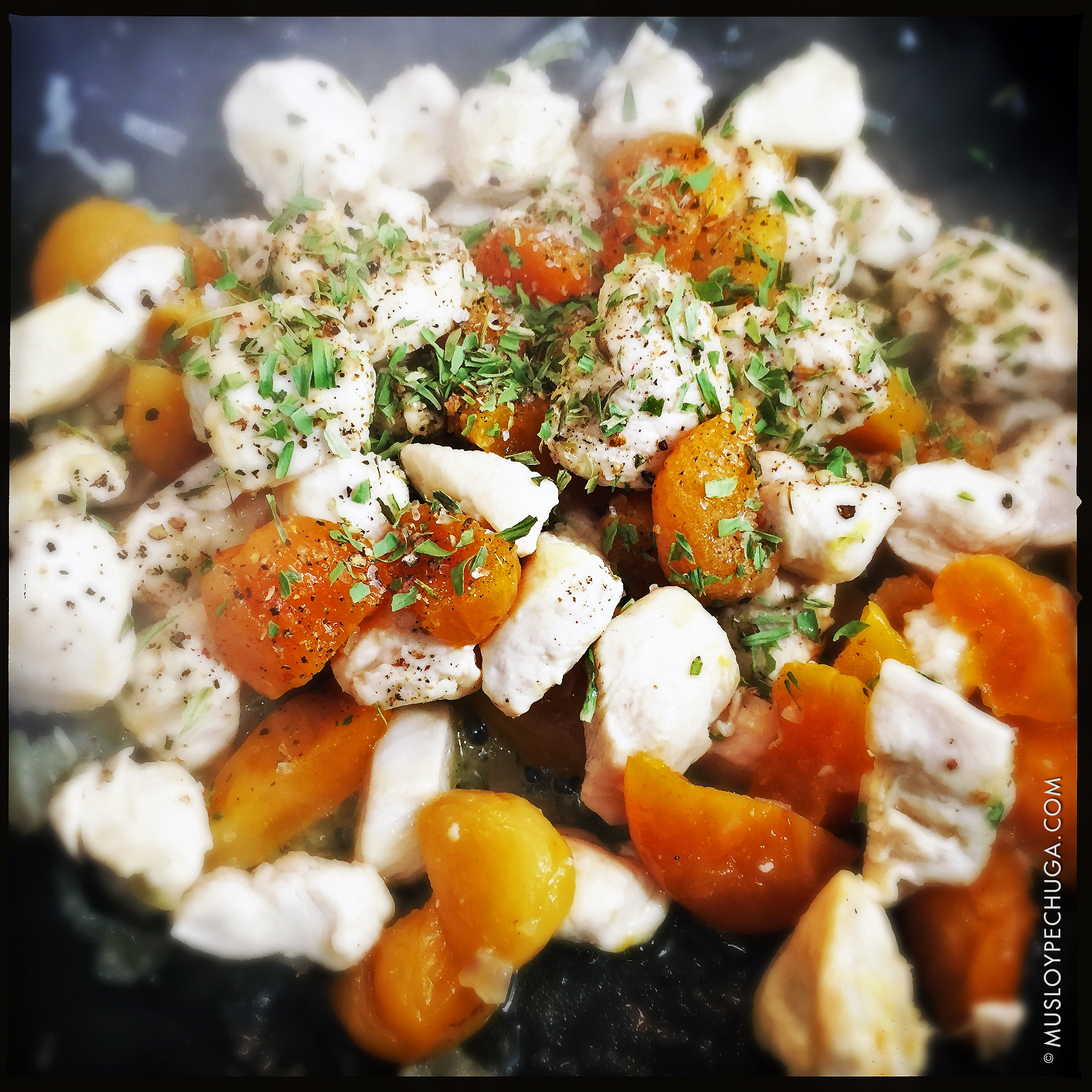 Es esta, una vez más, una receta de origen francés que, en realidad puede ser elaborada con pechugas de cualquier tipo de ave. De hecho, y originariamente, habría de prepararse con carne de pintada, más sabrosa y firme. En cualquier caso, esta versión preparada con unas más accesibles pechugas de pollo –y una vez hecha la salvedad– no desdice en absoluto el resultado de la original. Y, puestos a hacer variaciones, también resulta deliciosa sustituyendo los albaricoques por unas olivas desaladas, deshuesadas y troceadas. A gusto del cocinero y de sus comensales!