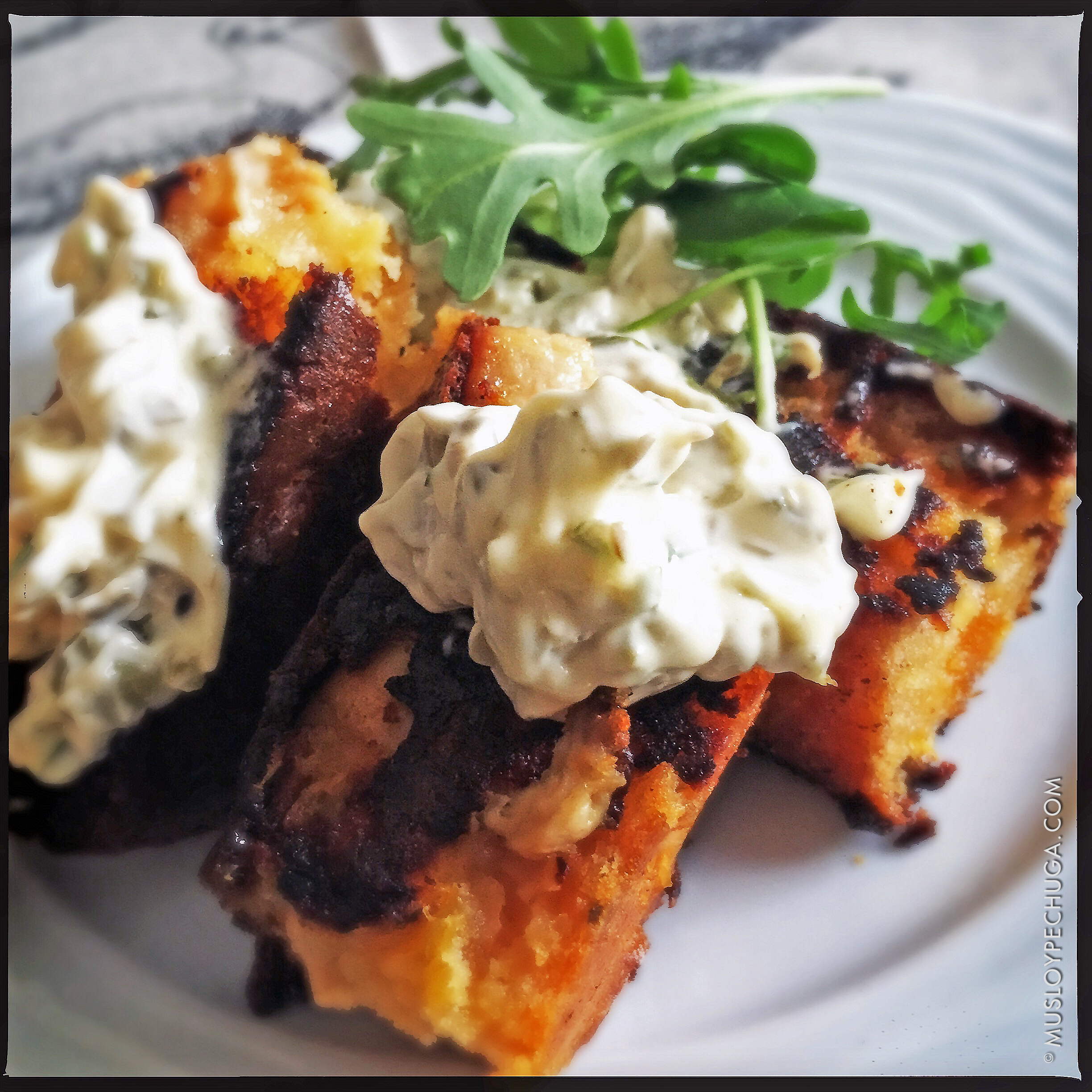 A la hora de presentarlo, y como ya comentaba, podemos servirlo en caliente o en frío, acompañado por una ensalada o una sencilla salsa tipo tártara que prepararemos picando muy finamente media chalota, un par de pepinillos medianos, una cucharadita de alcaparras y unas gotas de limón y mezclándolos con cuatro o cinco cucharadas de mahonesa –casera, por supuesto-. Personalmente me gusta hacer lonchas –ya en frío-, tostarlas en una plancha con un poco de mantequilla y añadirles un poco de esta sencilla salsa. El crujiente de la plancha aporta una nueva textura y más sabor a esta interesante y sencilla receta. Y esto es todo; espero que ustedes la disfruten y, como siempre… bon appétit!