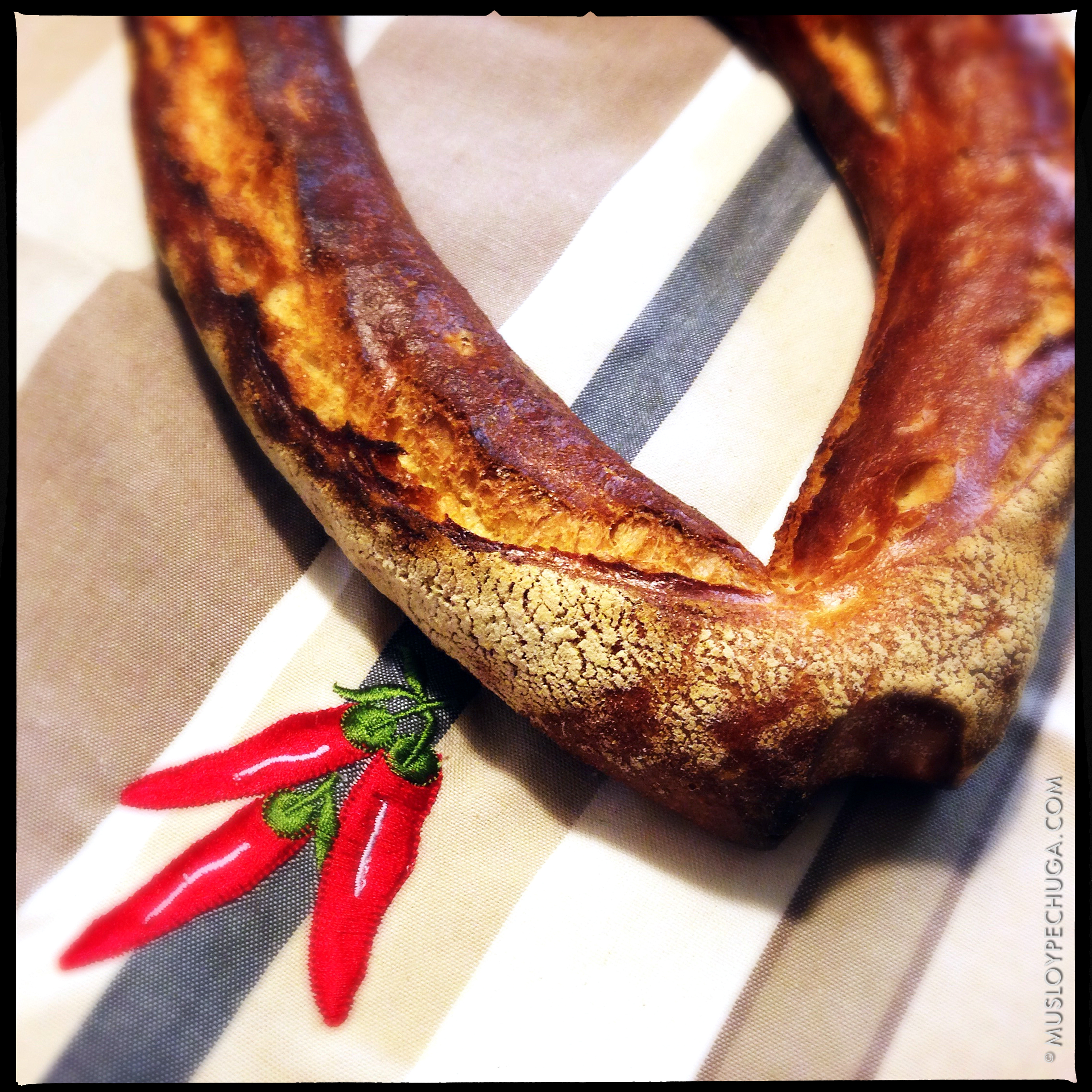 Hoy vamos a preparar una variante de la sopa más clásica y sencilla –aceite, ajo, pan seco y agua– a la que, como si un día de fiesta se tratara, añadiremos un poco de bacalao desmigado, tomate y carne de pimiento choricero. Es costumbre por estas tierras utilizar un pan especial para estas recetas llamado «sopako», es decir (pan) de sopa. Su característica principal es su horneado fuerte, el cual seca completamente la masa fermentada dejando el pan sin la esponjosidad de su miga y con un tono que varía entre el tostado fuerte y el casi quemado, proporcionando a las sopas y salsas elaboradas con él una gran consistencia y aroma levemente ahumado. Si no disponéis de este pan, podéis recurrir a un pan duro que podéis hornear unos minutos para acabar de secar y dorar. Vamos con el resto de ingredientes;