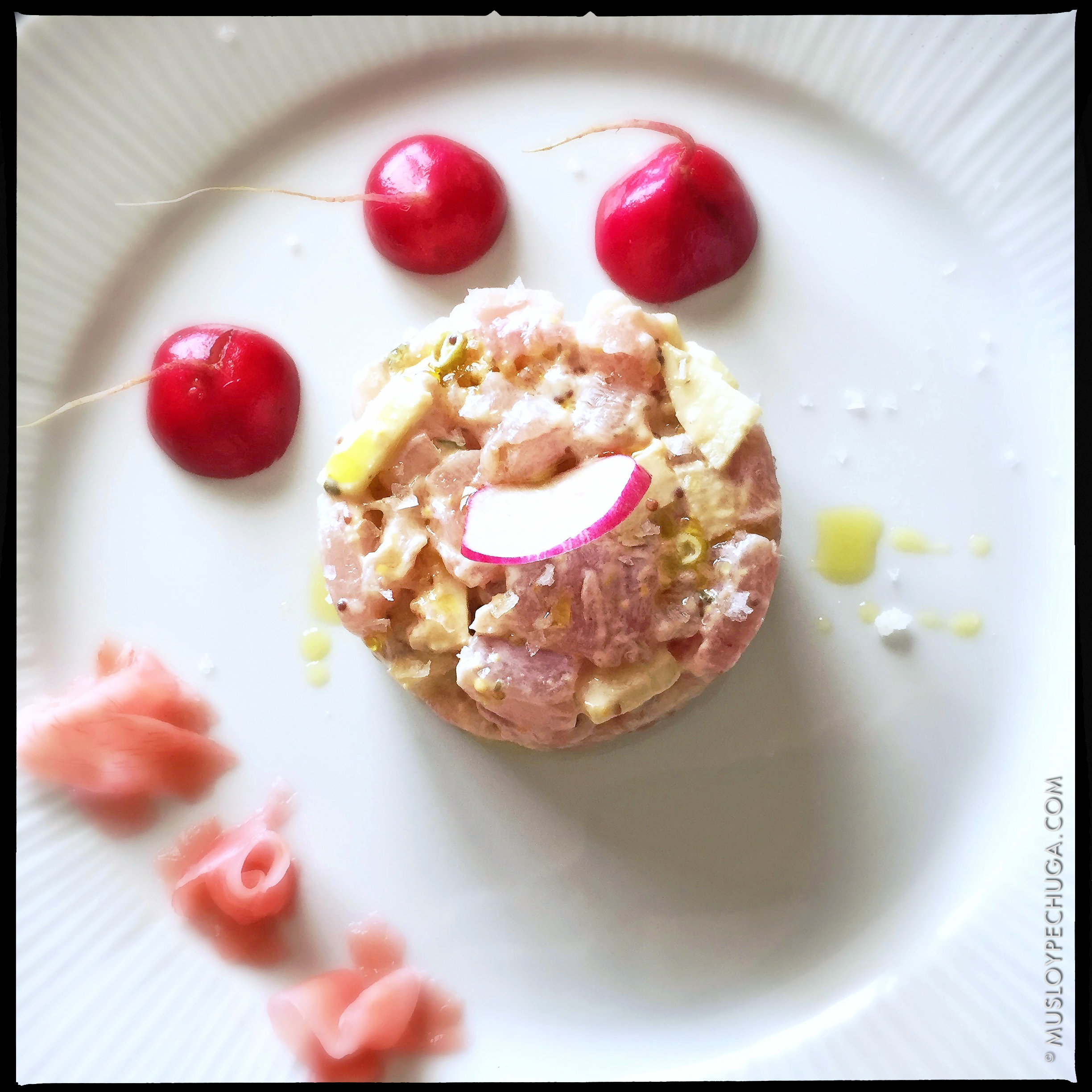 Craso error. Dos días después retornamos a nuestro eterno otoño, con sus cielos cubiertos y sus tímidas lluvias –vamos, lo habitual-. Así que tras la reflexión pertinente –«si ya sabías que esto iba a pasar»– solo restaba hacer gala del carácter norteño y desafiar a los elementos: ¿un tartar o un salmorejo bajo nuestro cielo amenazante y encapotado? Mucho mejor, pues!.