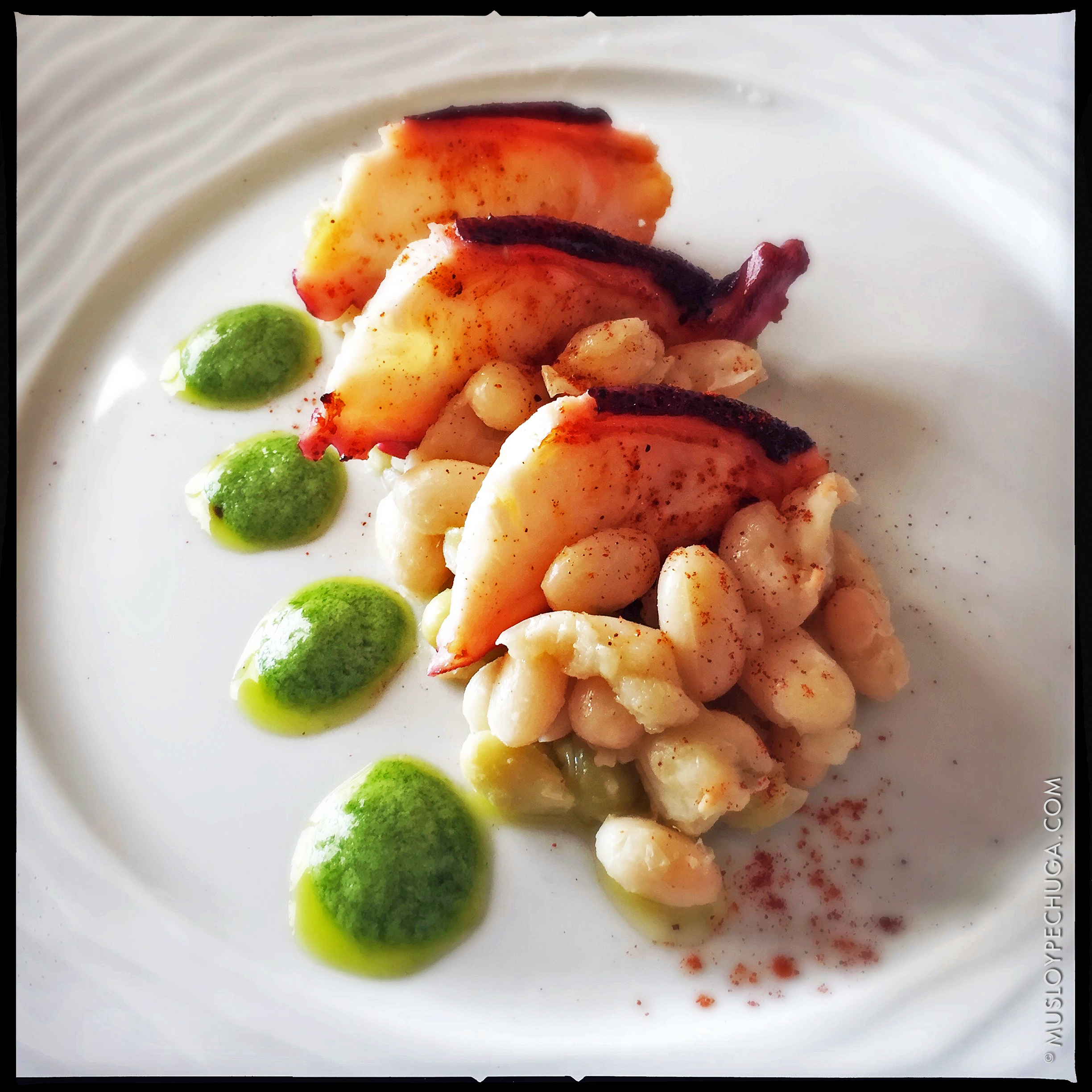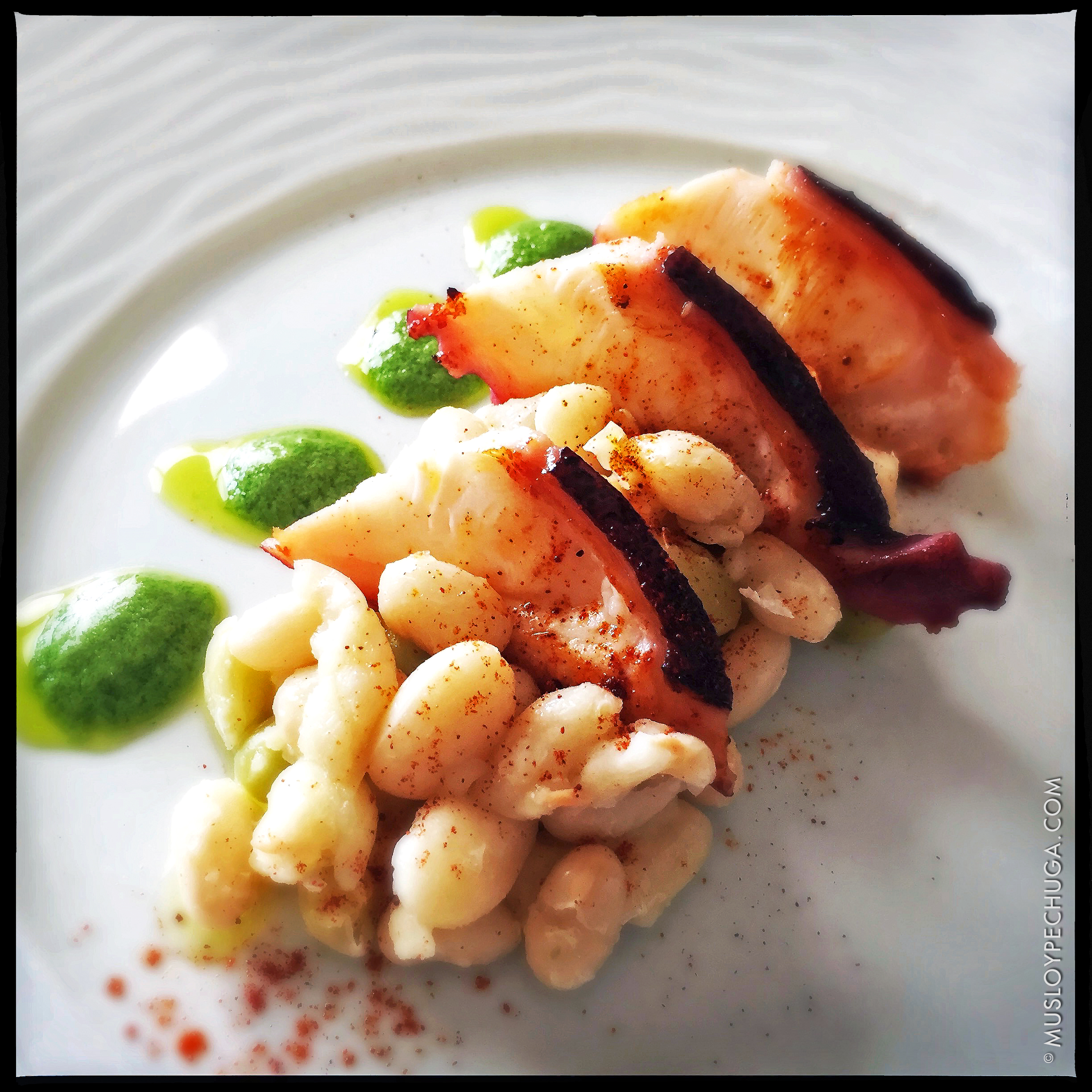 Esta suave ensalada templada combina la sutileza aromática y meloso paladar de un excepcional producto de temporada como son las pochas, con la textura fibrosa y aromas salinos y tostados del pulpo envuelto en el entorno ácido, amargo y de maderas de la vinagreta. Una delicia sencilla de preparar y de un resultado espectacular. Voy abriendo una botella de vino blanco para brindar mientras ustedes toman asiento… bon appétit!