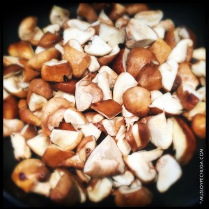 - Unos 200 gramos de Setas Shitake –o Champiñones, Portobellos, etc. al gusto-.